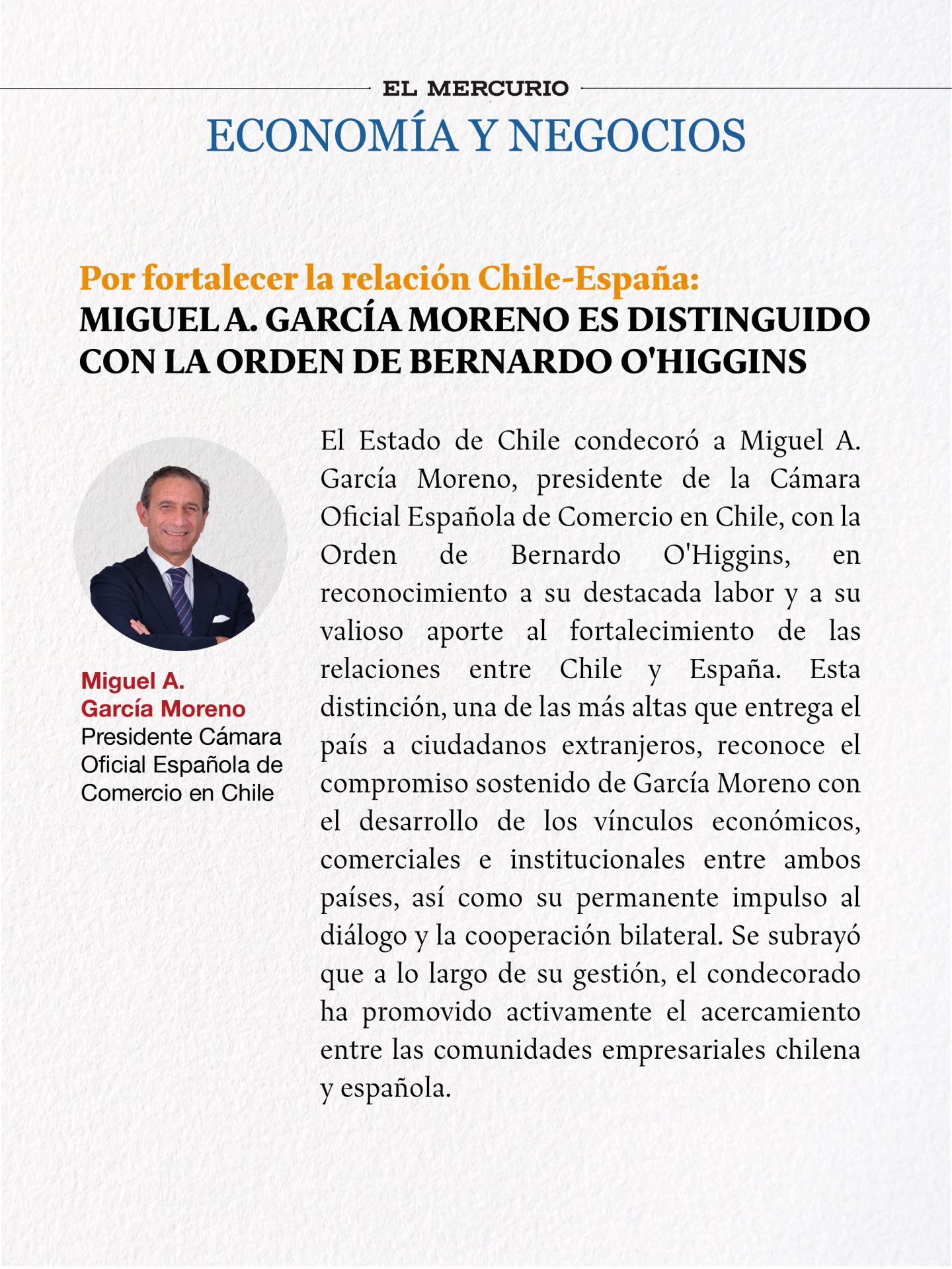 Nuestra Cena Anual 2025 fue parte de las páginas sociales de La Tercera, reflejando el espíritu de encuentro y colaboración que caracteriza a este evento emblemático de la Cámara Oficial Española de Comercio en Chile.